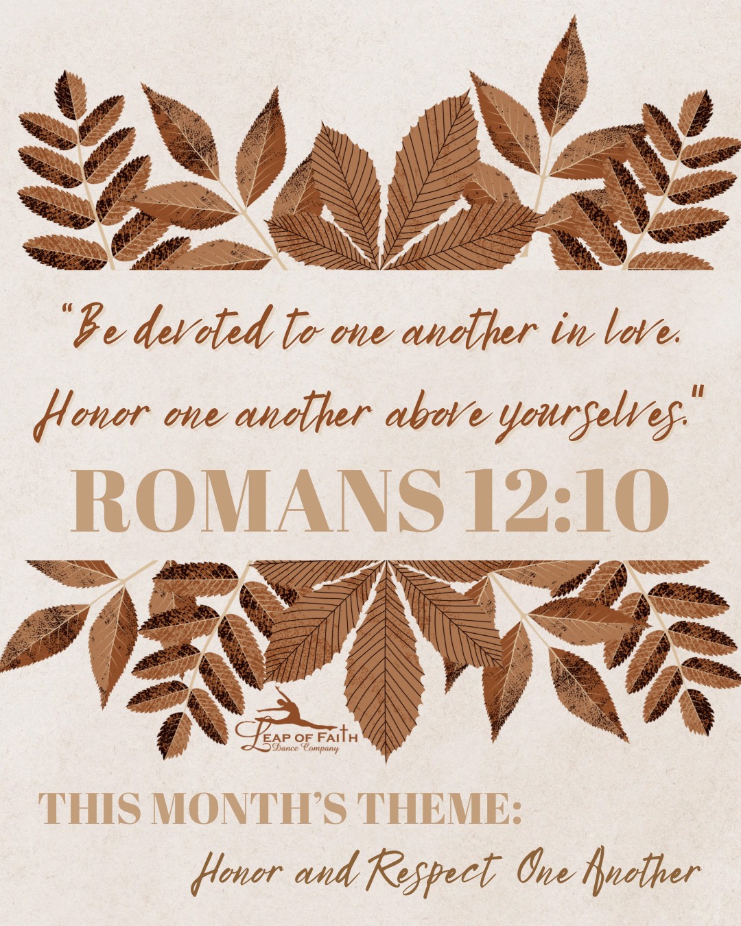 Each week Leap of Faith has a devotional related to the verse of the month. This year’s verses will be focused on how we can equip ourselves with the armor of God. Creative Movement – Beg/Int level students can recite the verse of the month during the last class of every month to receive an extra coin.